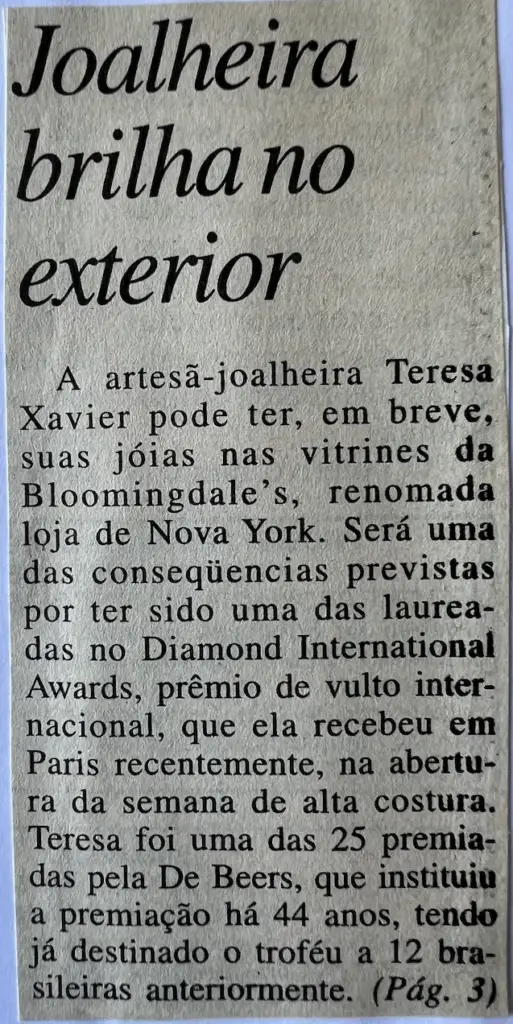 A artesã joalheira Tereza Xavier pode ter, em breve, suas joias nas vitrines da Bloomingdale’s, renomada loja de Nova Iorque.