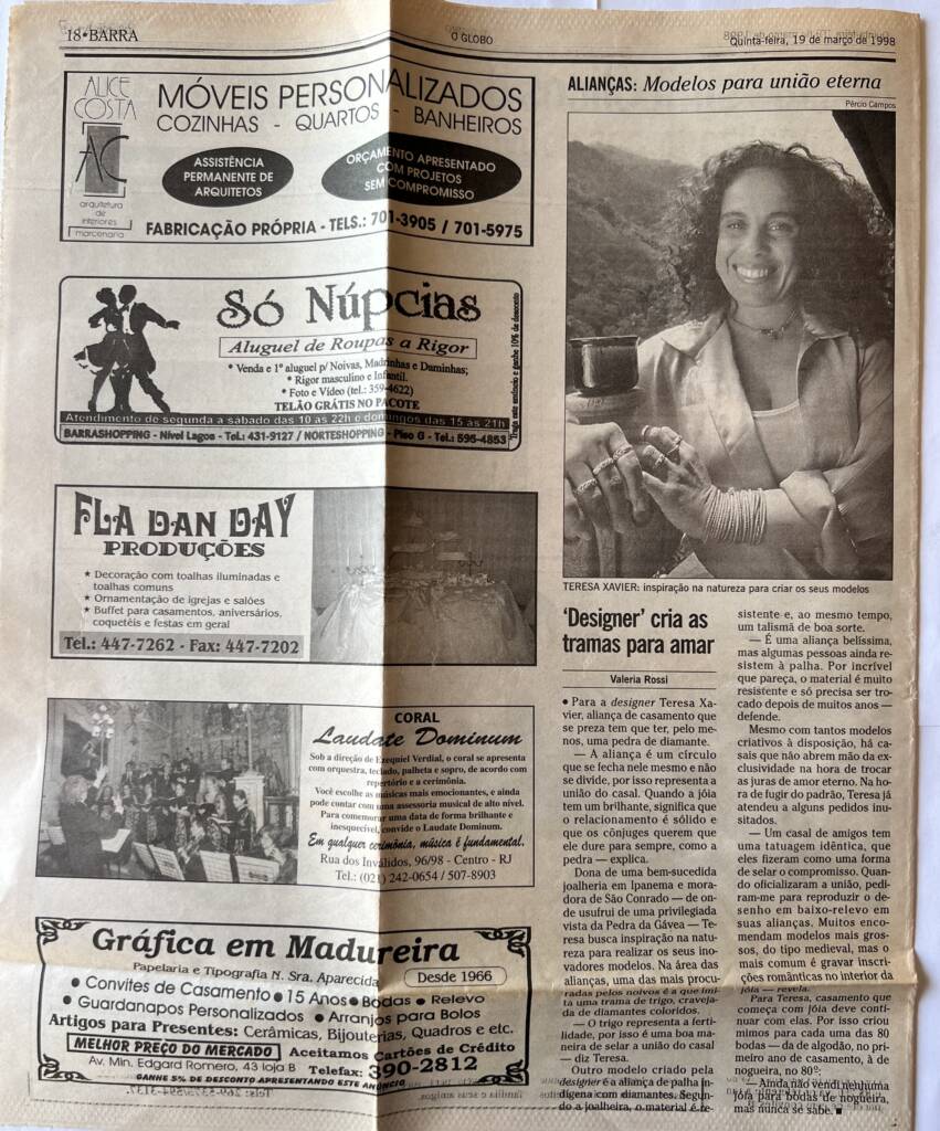 Para a designer Tereza Xavier, aliança de casamento que se preza tem que ter, pelo menos, uma pedra de Diamante.