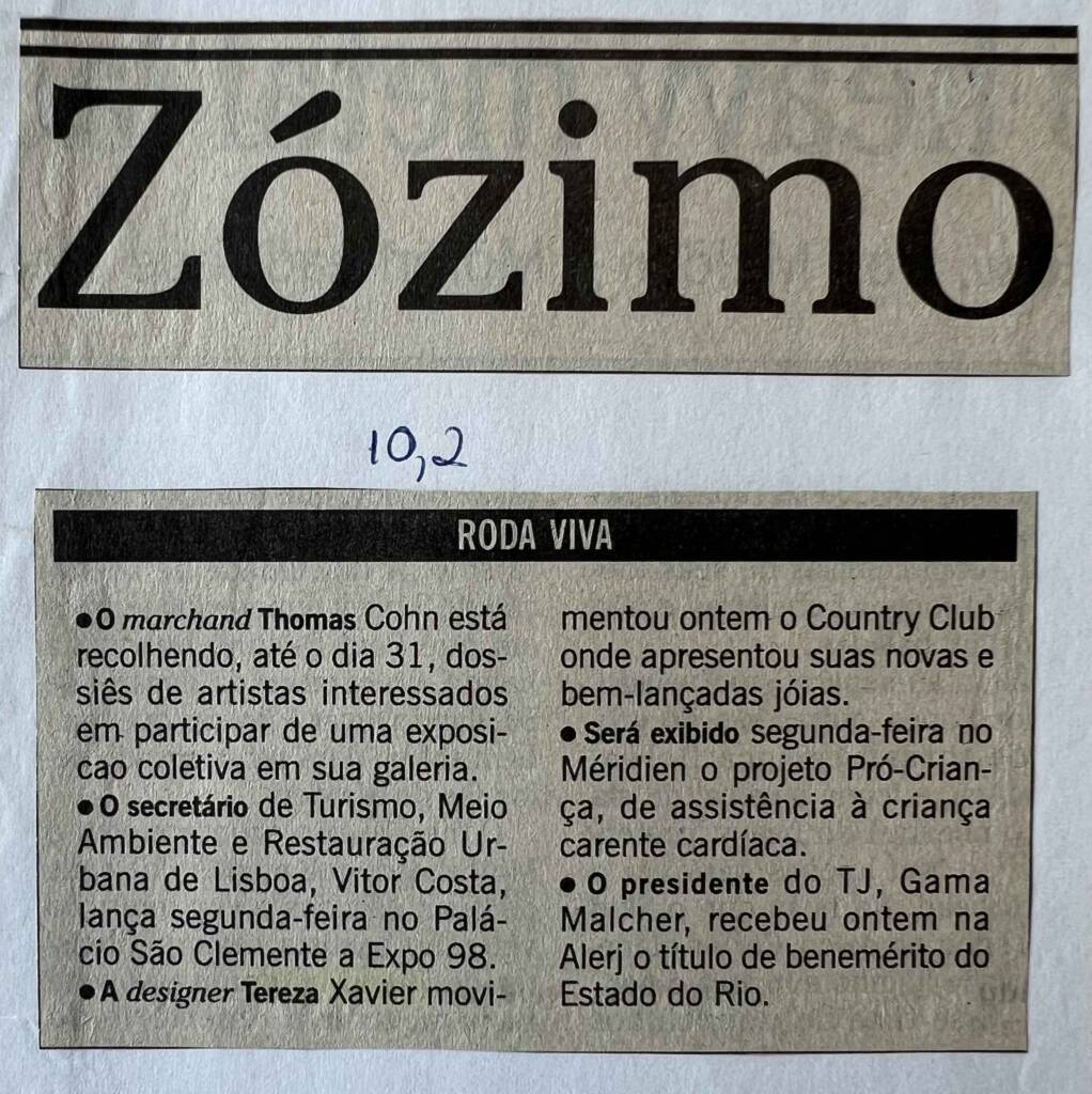 O Globo Zózimo 1998: A designer Tereza Xavier movimentou o Country Club