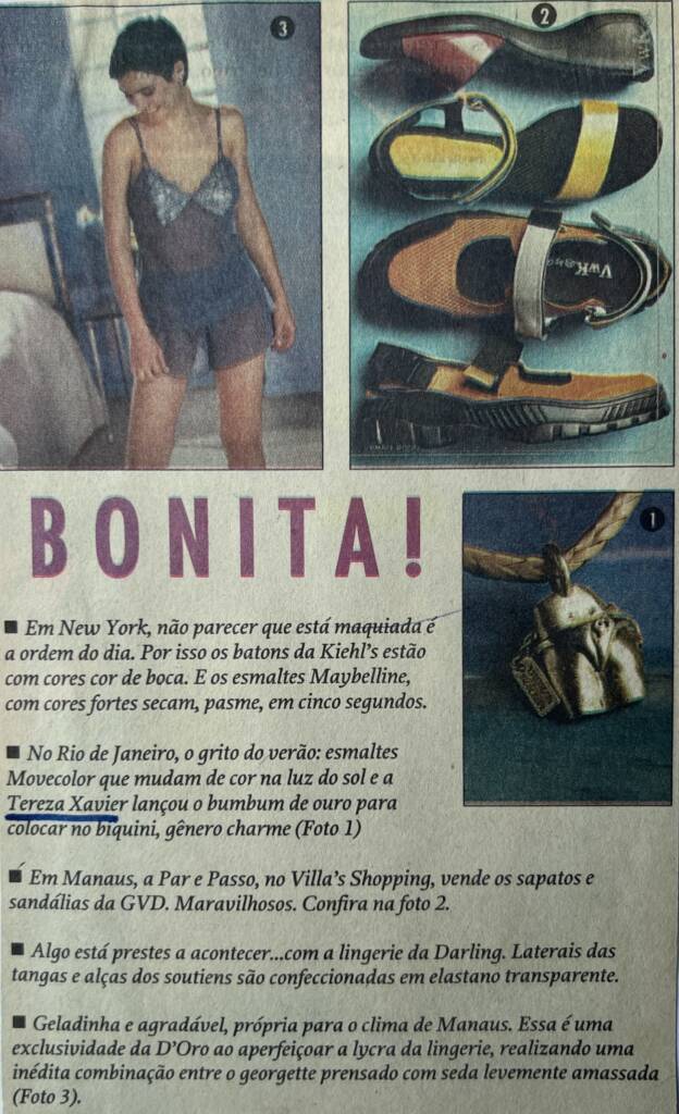 Em 1999 Tereza Xavier lançou o Pingente Bumbum de ouro para colocar no biquini, gênero charme em matéria ao veículo Diário do Pará.
