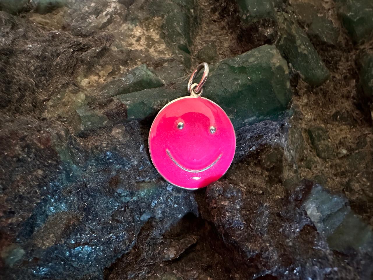 Pingente Smile confeccionado em Prata 925 e esmalte na cor rosa choque. Este pingente Smile pode ser confeccionado por encomenda em Ouro 18k.